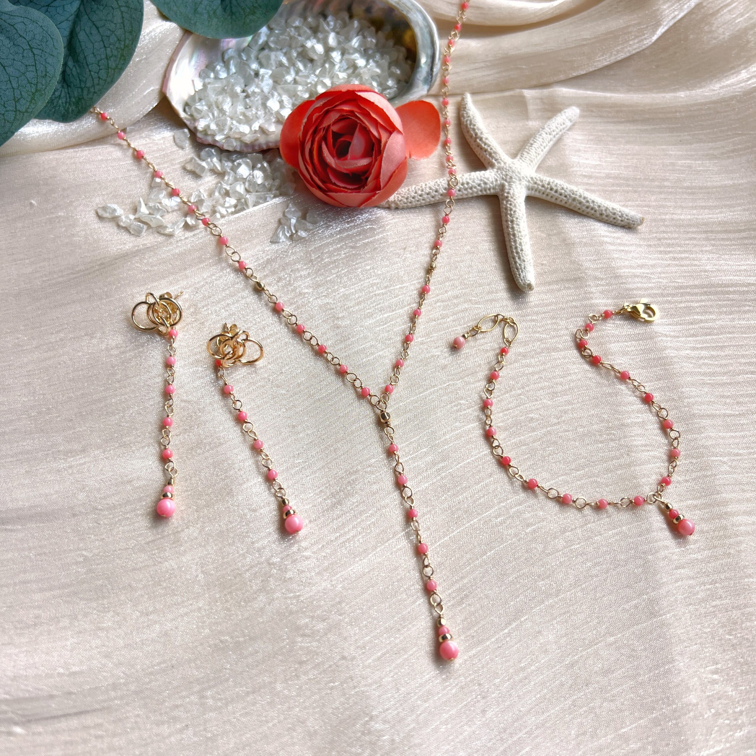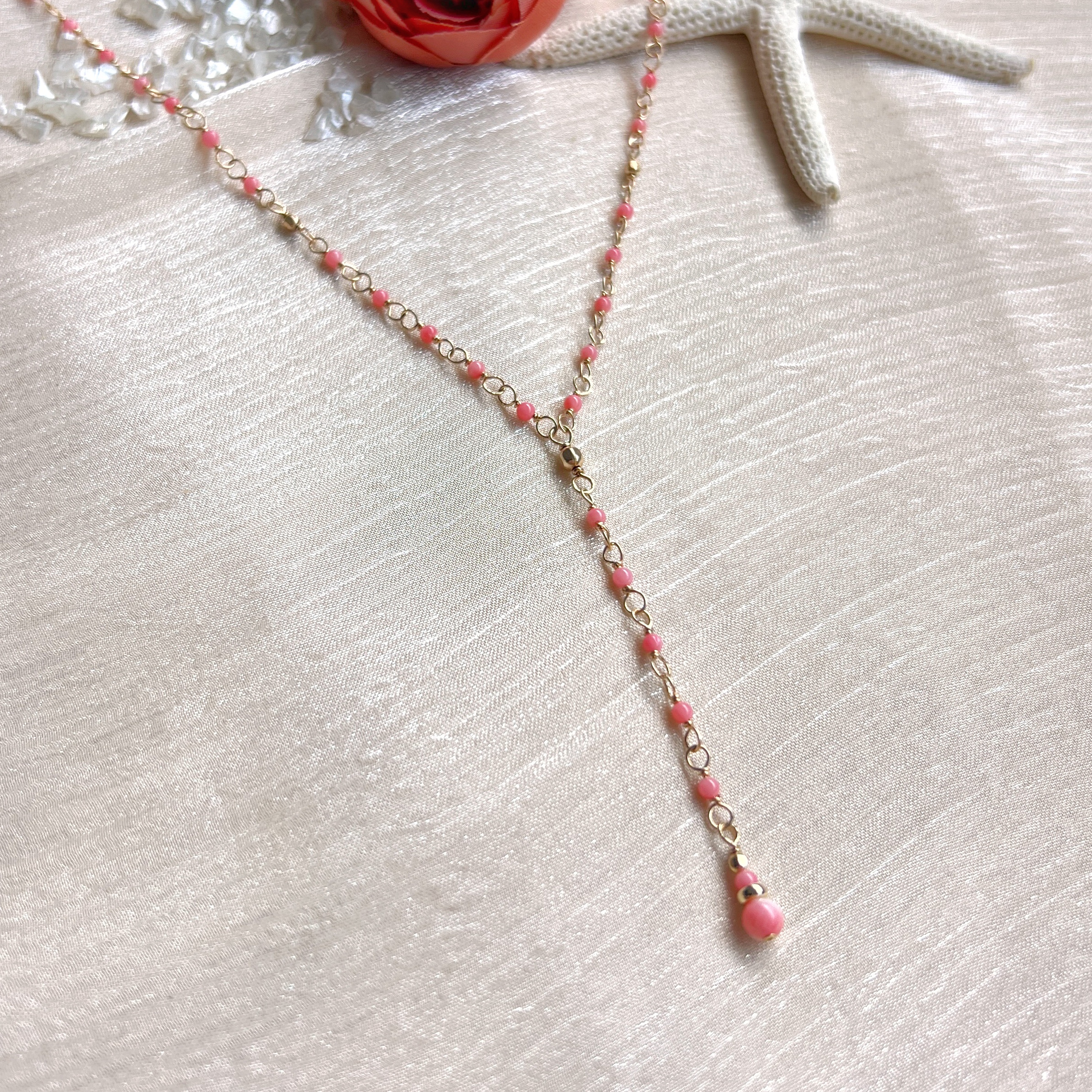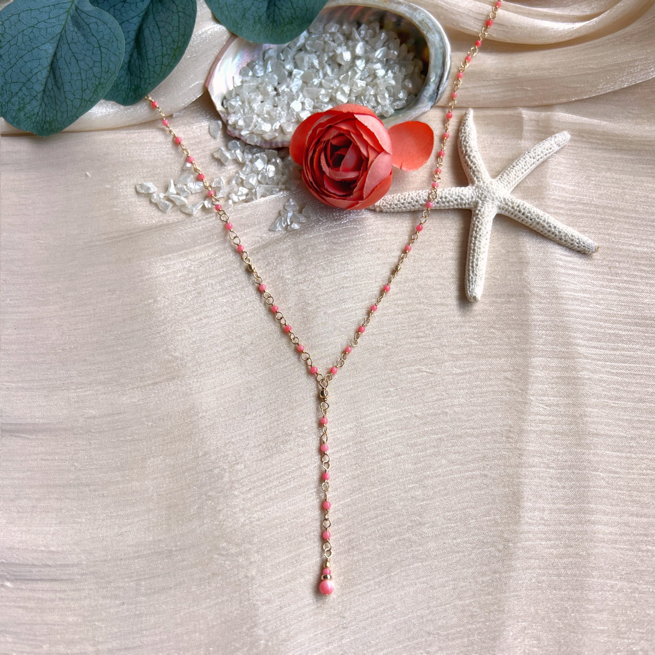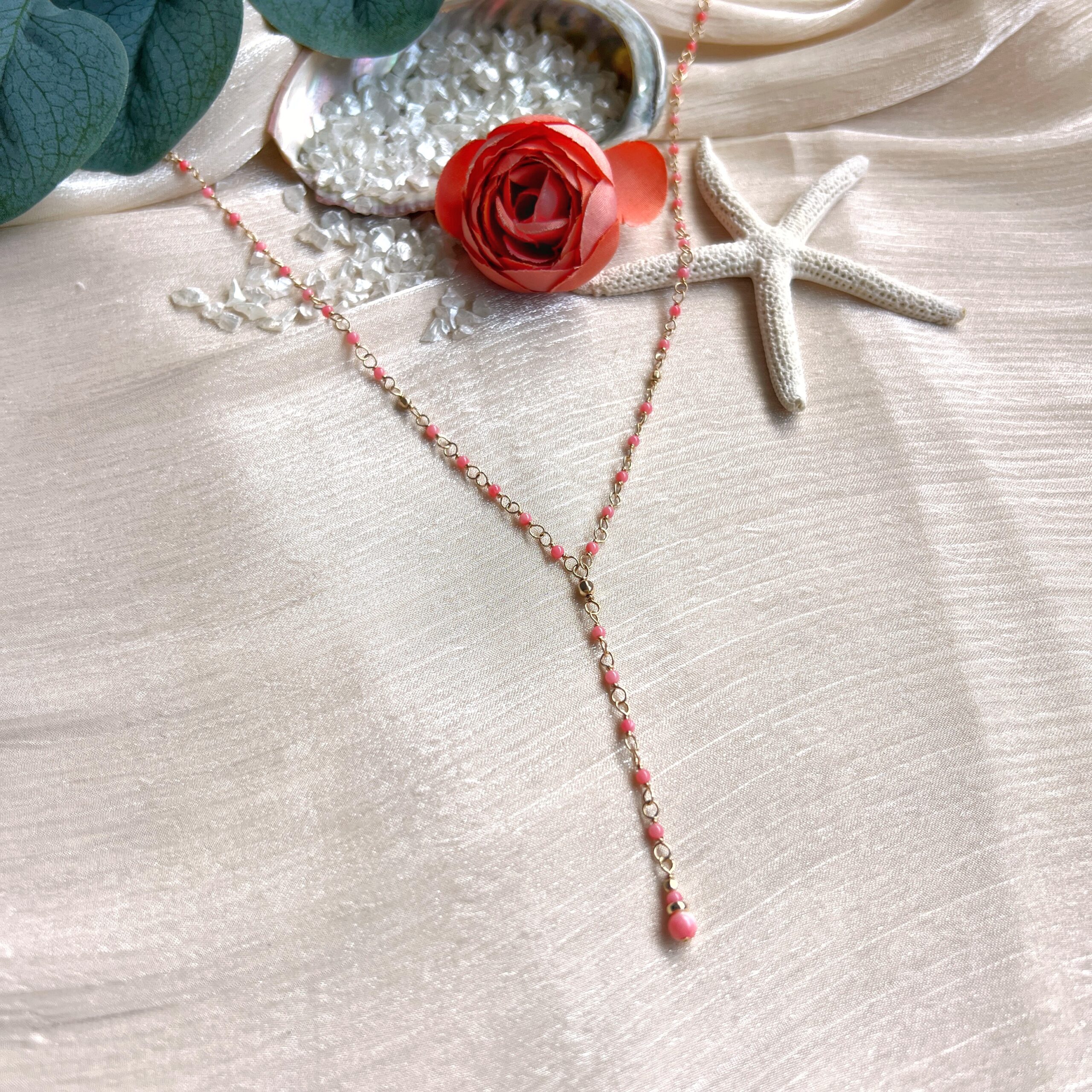 Be the first to review “Pink coral Ayla lariat dainty necklace”