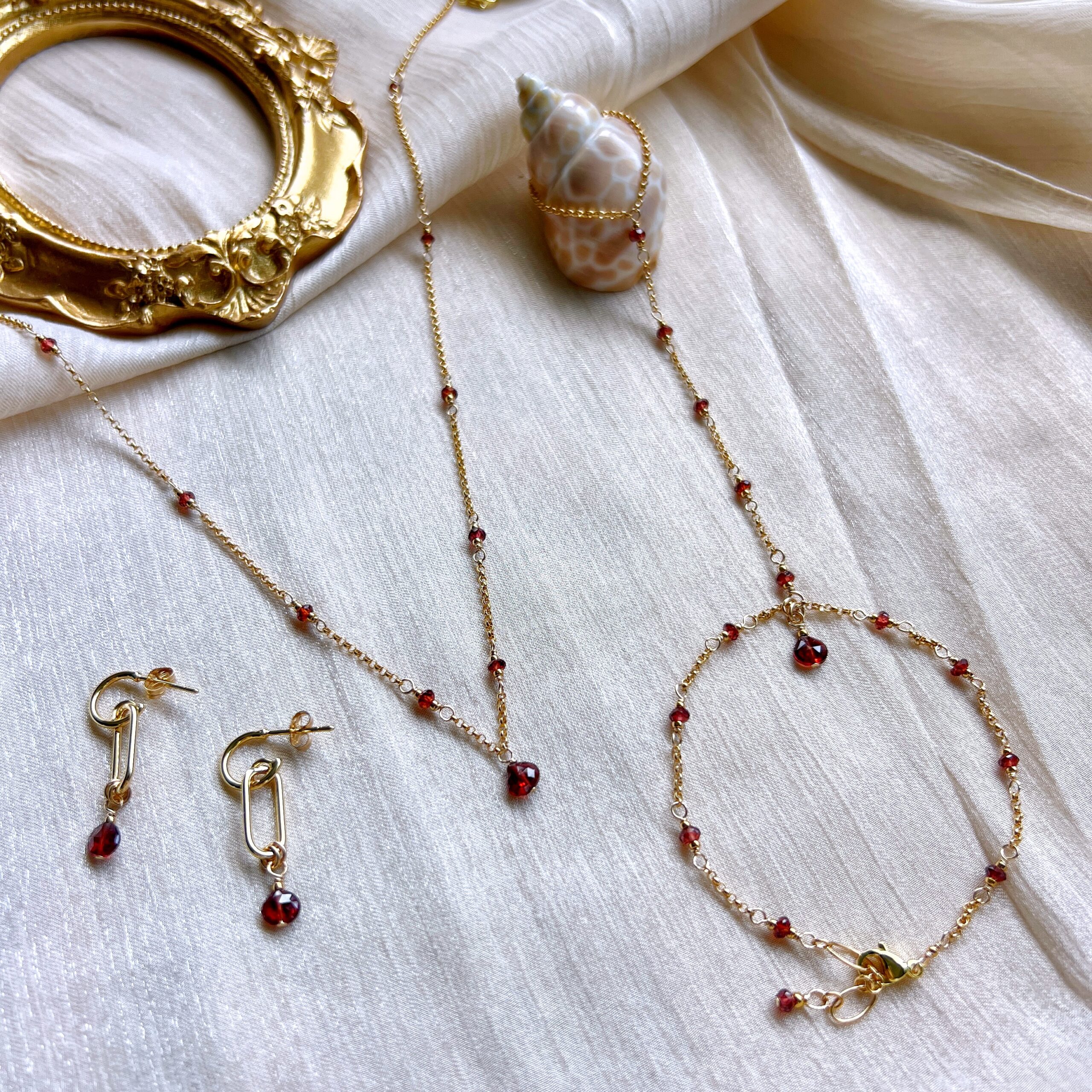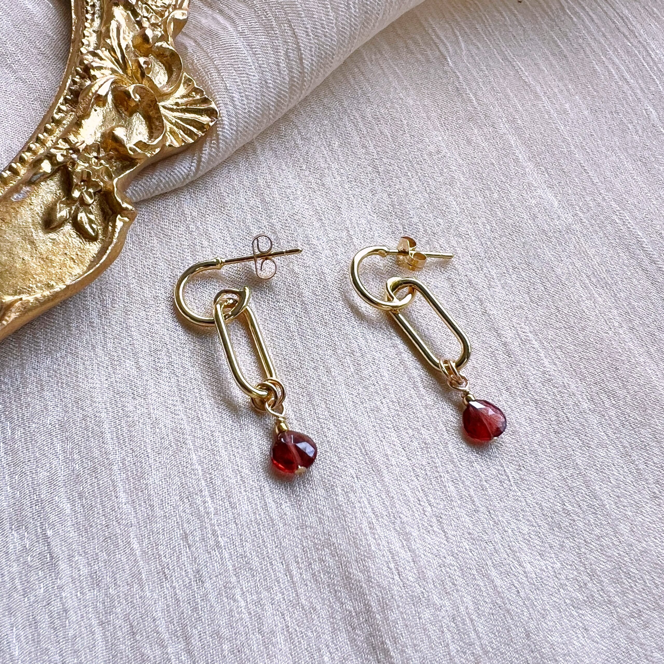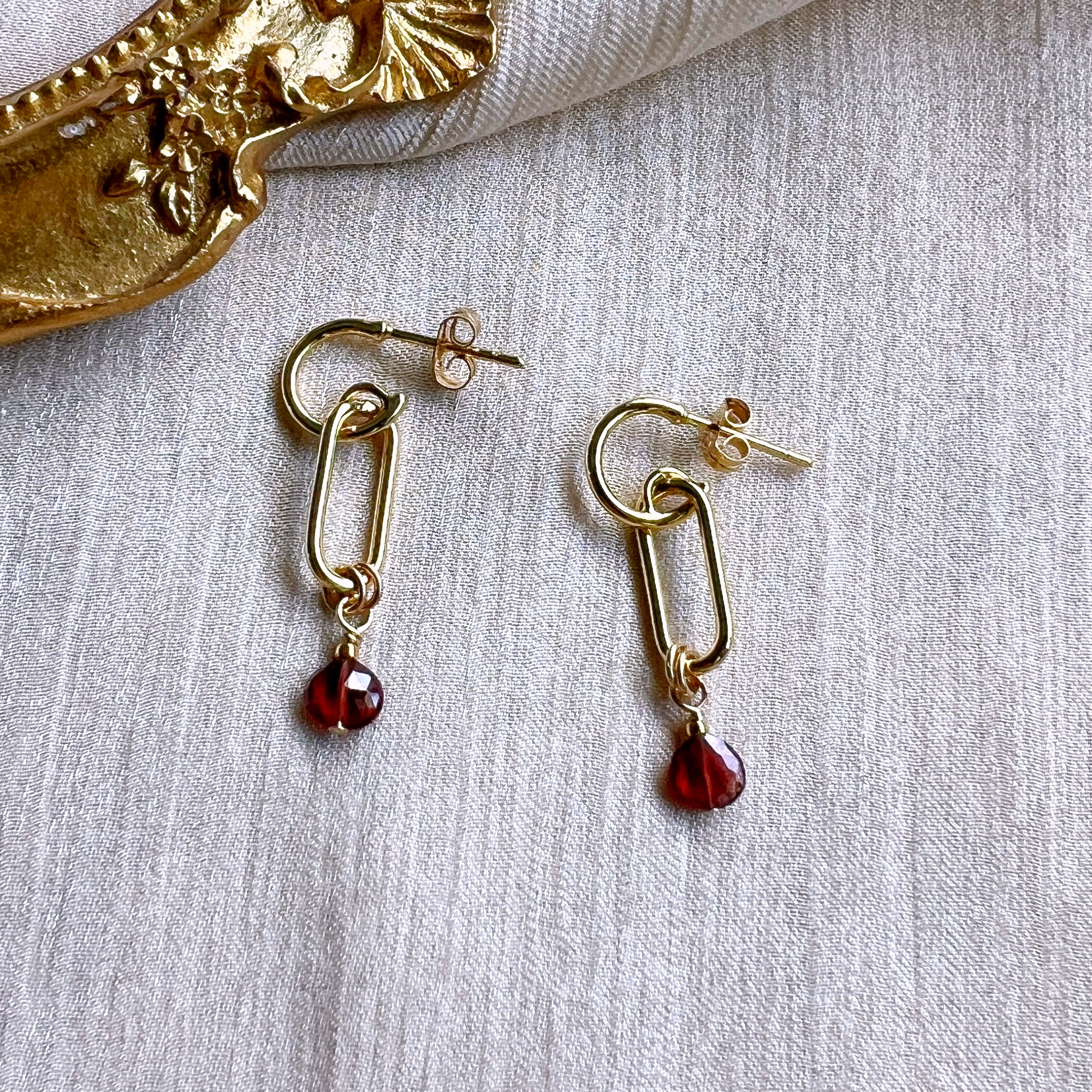 Be the first to review “Tiny chestnut garnet paper clip chain earrings”